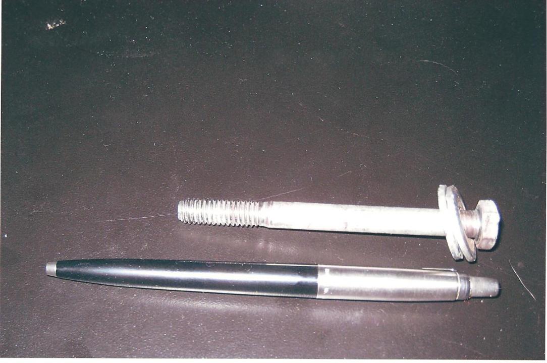 I pulled the bolt out and learned it was in a copper tube about 3 1/2 inch's long . Haven't been able to get the tube out yet . Not enough to get ahold of. Here is a picture of the bolt.
